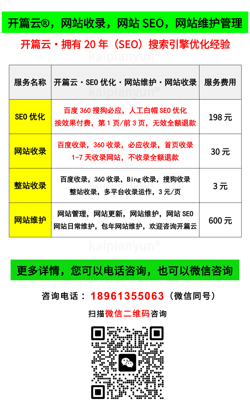 打造SEO優化,網站推廣標桿企業! 咨詢熱線:18961355063(微信同號)